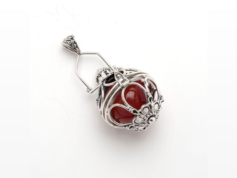 The Cage Sphere Pendant Opens to Cahge out Spheres and is Sterling Silver.